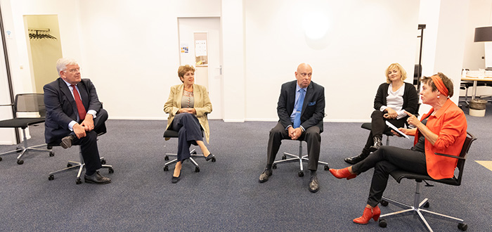 De burgemeester werd hartelijk ontvangen door onze directeur-bestuurder Fenna Noordermeer. Tijdens het werkbezoek maakte Jan van Zanen kennis met PEP en de medebewoners Centrum Groepswonen en Humanitas Haaglanden. Gepassioneerd vertelt Terry van der Heide van Centrum Groepswonen over de inzet van haar organisatie in de stad.