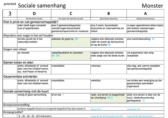De belangrijke kernwaarden, die volgden uit de sticker-workshop, worden in deze stap besproken en uitgewerkt. De vier varianten- of DCBA methode is door Kees Duijvestein ontwikkeld en afgeleid van het Amerikaanse schoolrapportsysteem. Daarin is A het op dat moment best haalbare en D nog net voldoende, ofwel, in dit geval, hetgeen wettelijk is voorgeschreven.