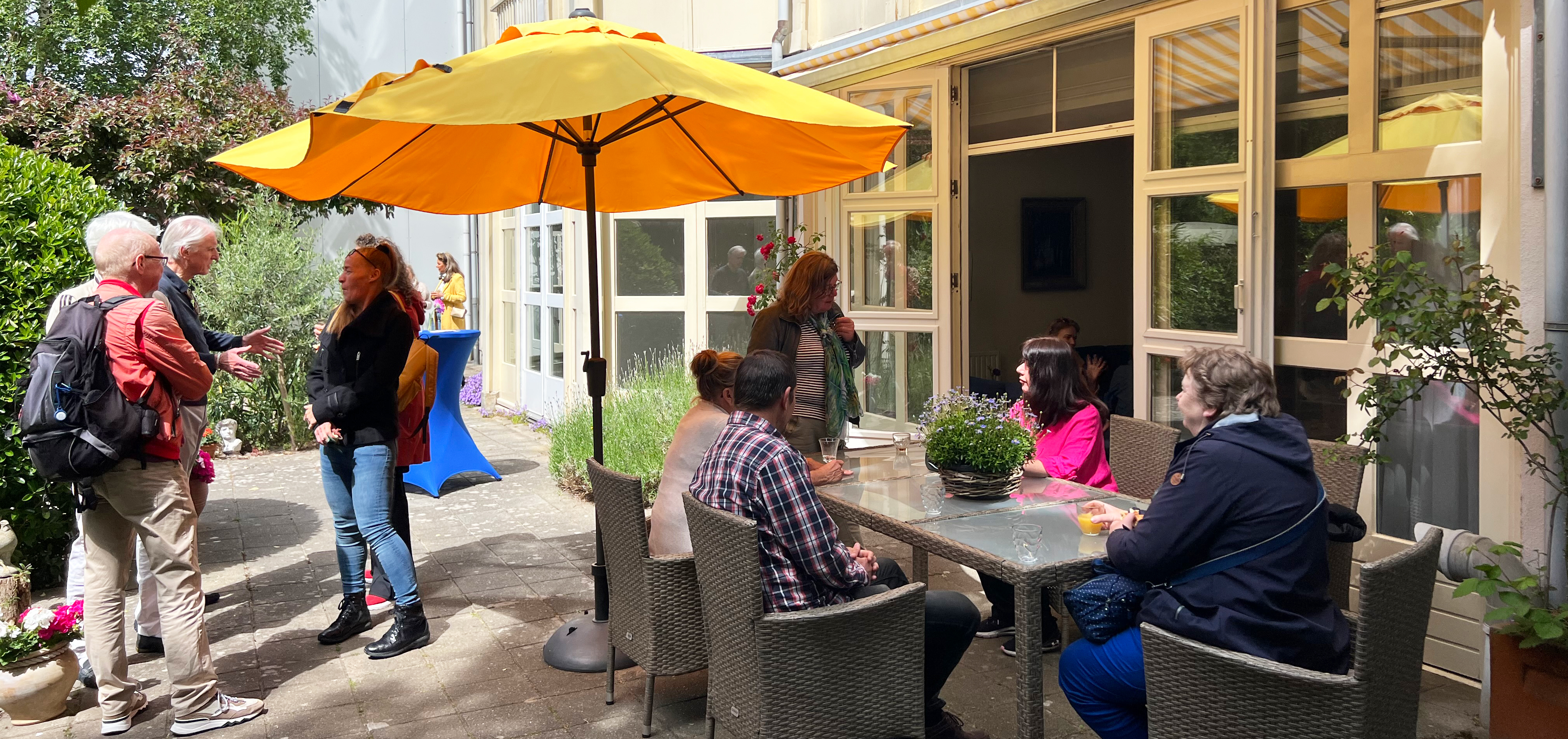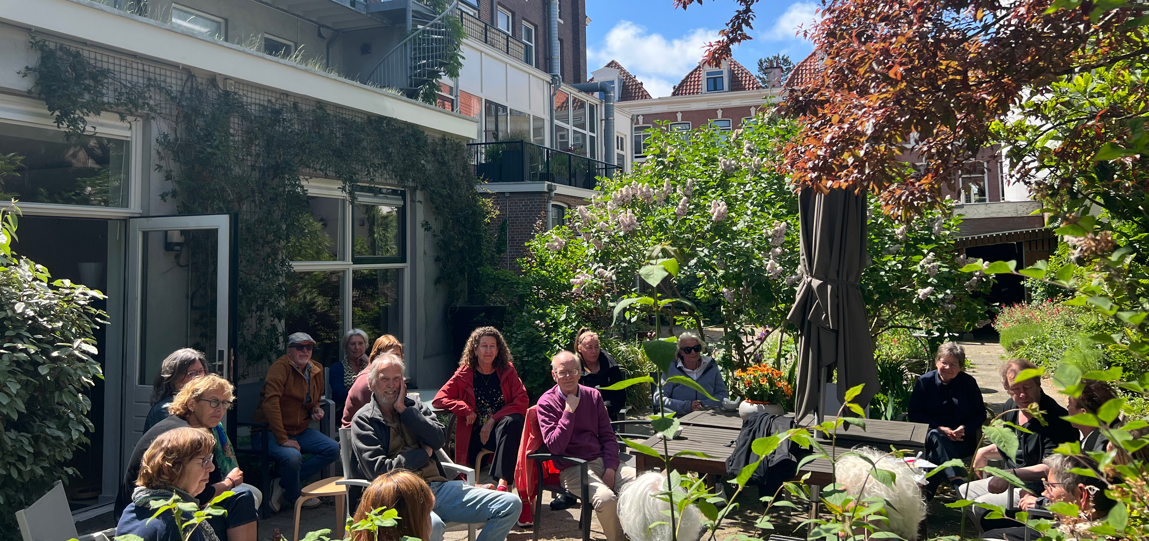 Foto hierboven: Groepsgesprek tussen bewoners en belangstellenden in de tuin van woongroep Van Speijk
