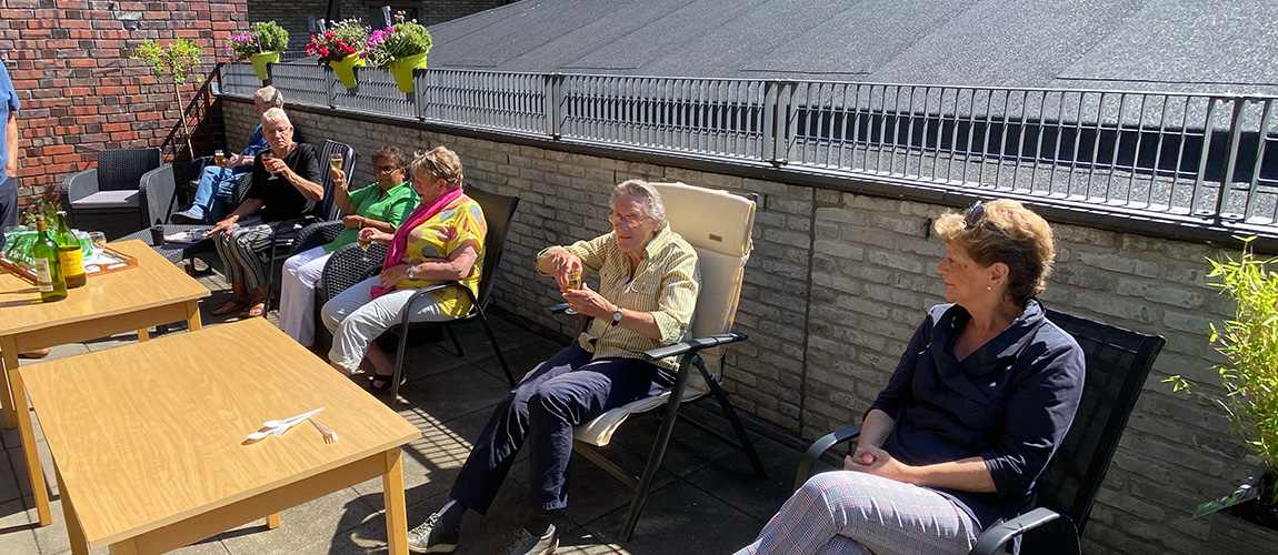 Het was werkelijk een feest. Voor het eerst sinds 15 maart weer gezamenlijk buiten gezeten op anderhalve meter afstand, natuurlijk. Eerst een borrel met een hapje en daarna het diner met eten van Ebere. Het smaakte heerlijk. Iedereen was tevreden en vond het fantastisch! aldus Jan van Heusden, secretaris van woongroep Ypenburg.