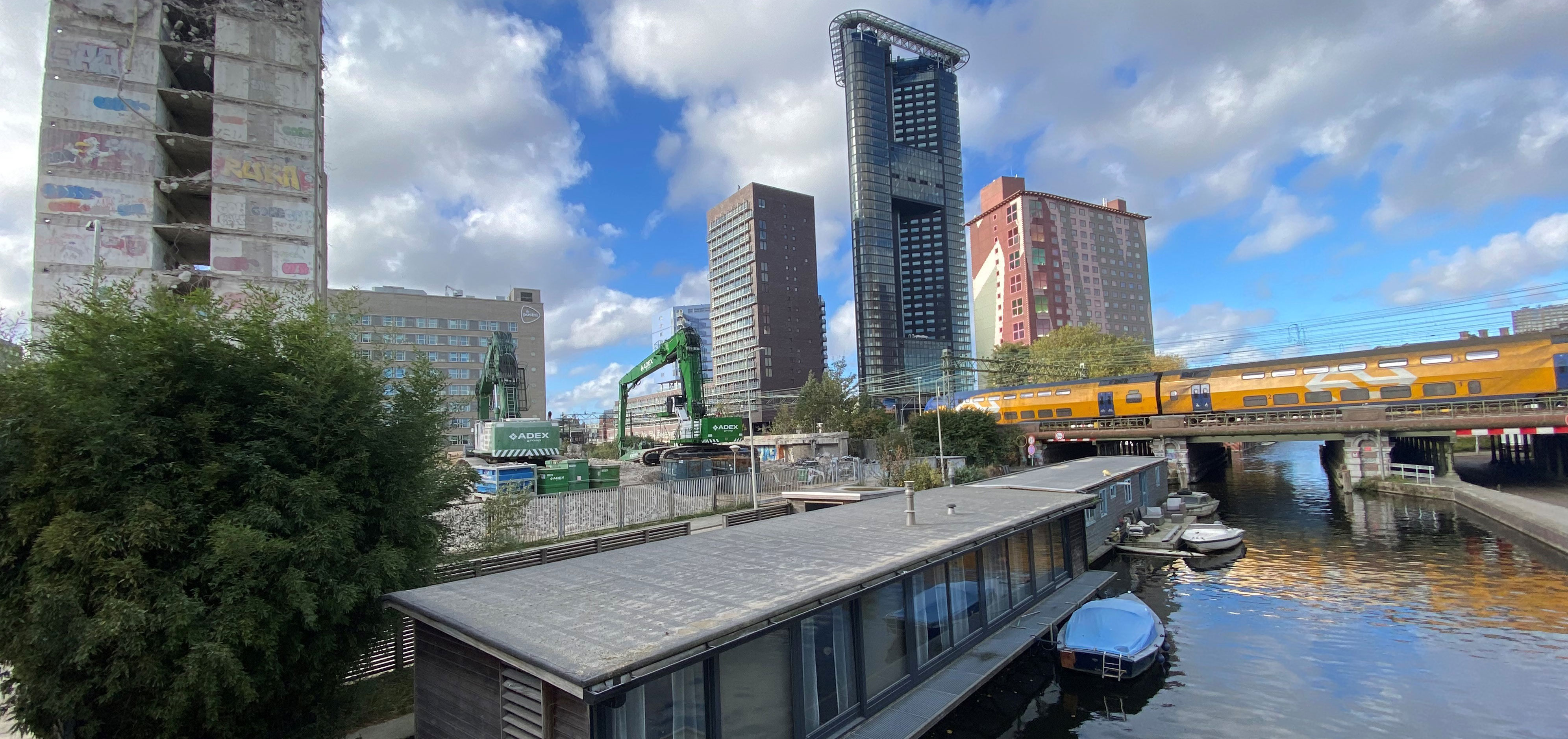 Links de huidige sloop van het ‘glaspaleis’ waar in The Grace (2 woontorens) ca. 1200 appartementen komen.